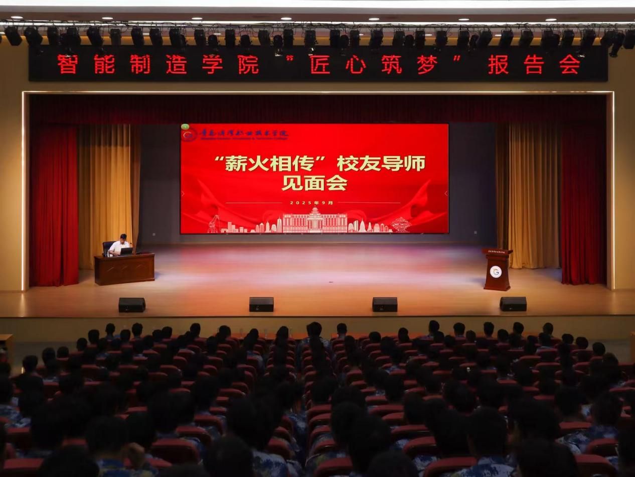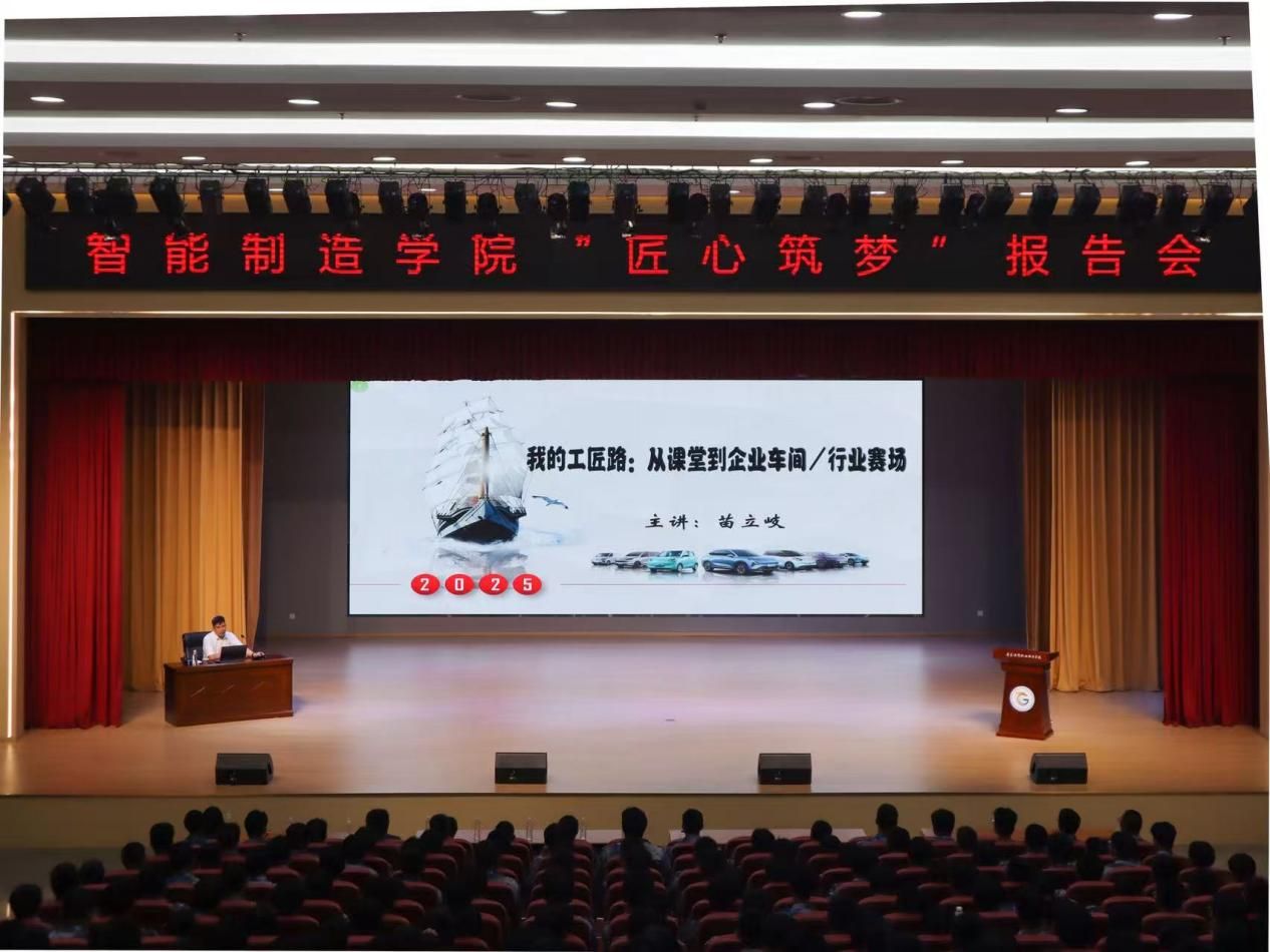 为落实国家技能人才培养战略,弘扬工匠精神,9月18日,智能制造学院成功举办“匠心筑梦”专题报告会暨“薪火相传”校友导师见面会,特邀上汽通用五菱青岛分公司技能大师苗立岐主讲。