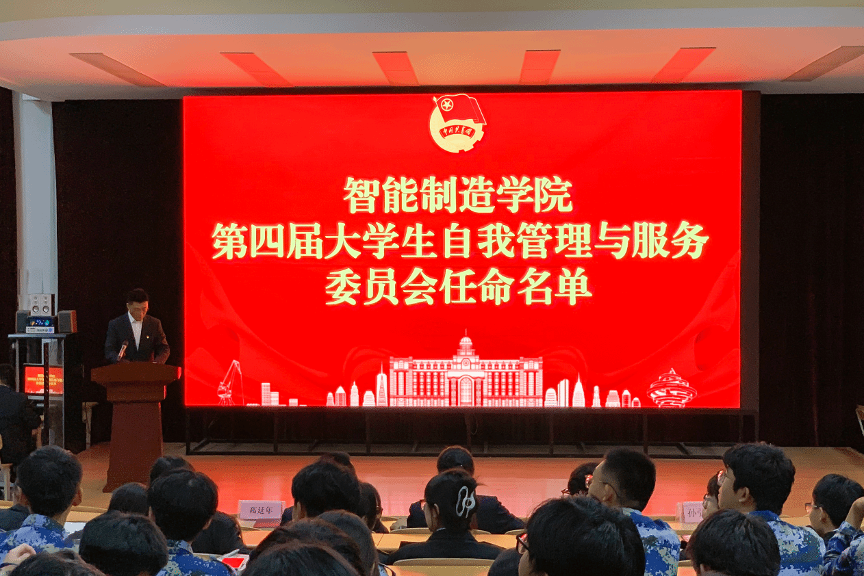10月15日,智能制造学院召开第四届大学生自我管理与服务委员会(简称“自委会”)任命大会。大会由第六届学生会代表廖雨晴主持,学院党总支副书记李银宾、团总支书记康忠香、全体辅导员及23至25级学生代表共170人参会。