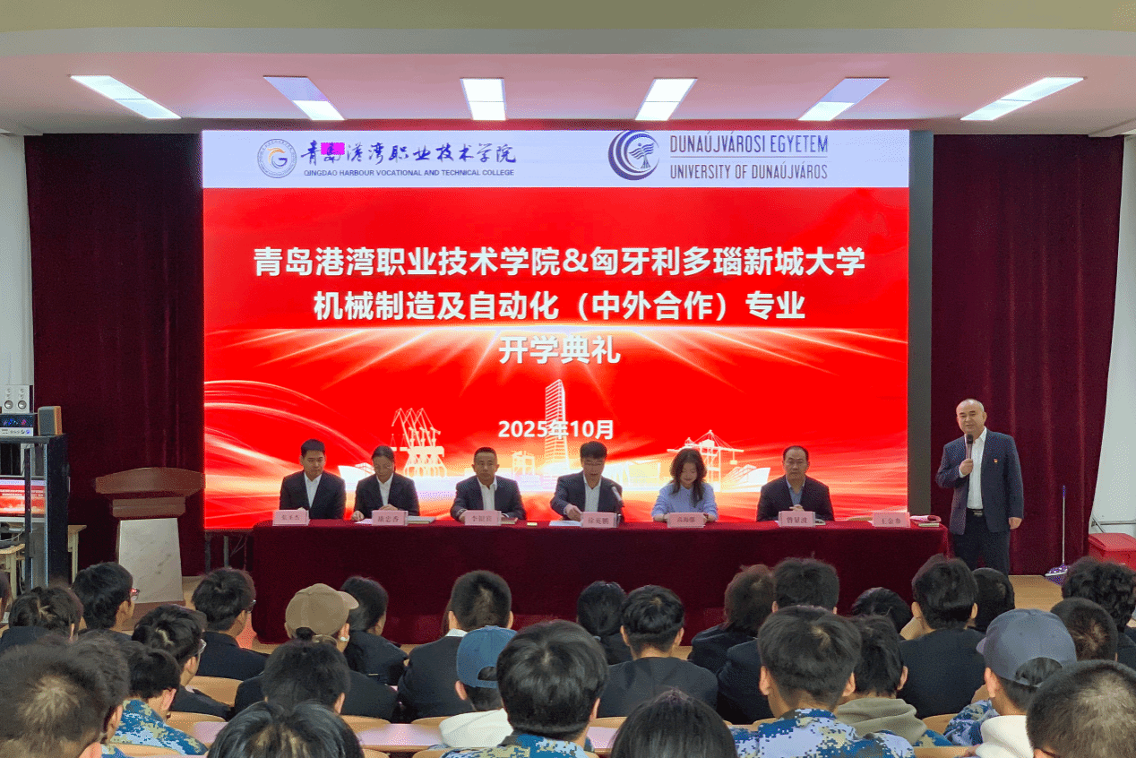 10月27日,青岛港湾职业技术学院智能制造学院在B5报告厅隆重举行机械制造及自动化(中外合作)专业班2025级新生开学典礼。学院领导班子、匈牙利多瑙新城大学中国办公室招生专员高海娜、专业带头人张圣杰老师,2024级、2025级全体中外合作班同学共同参加。典礼由机械基础教研室主任王金参主持。