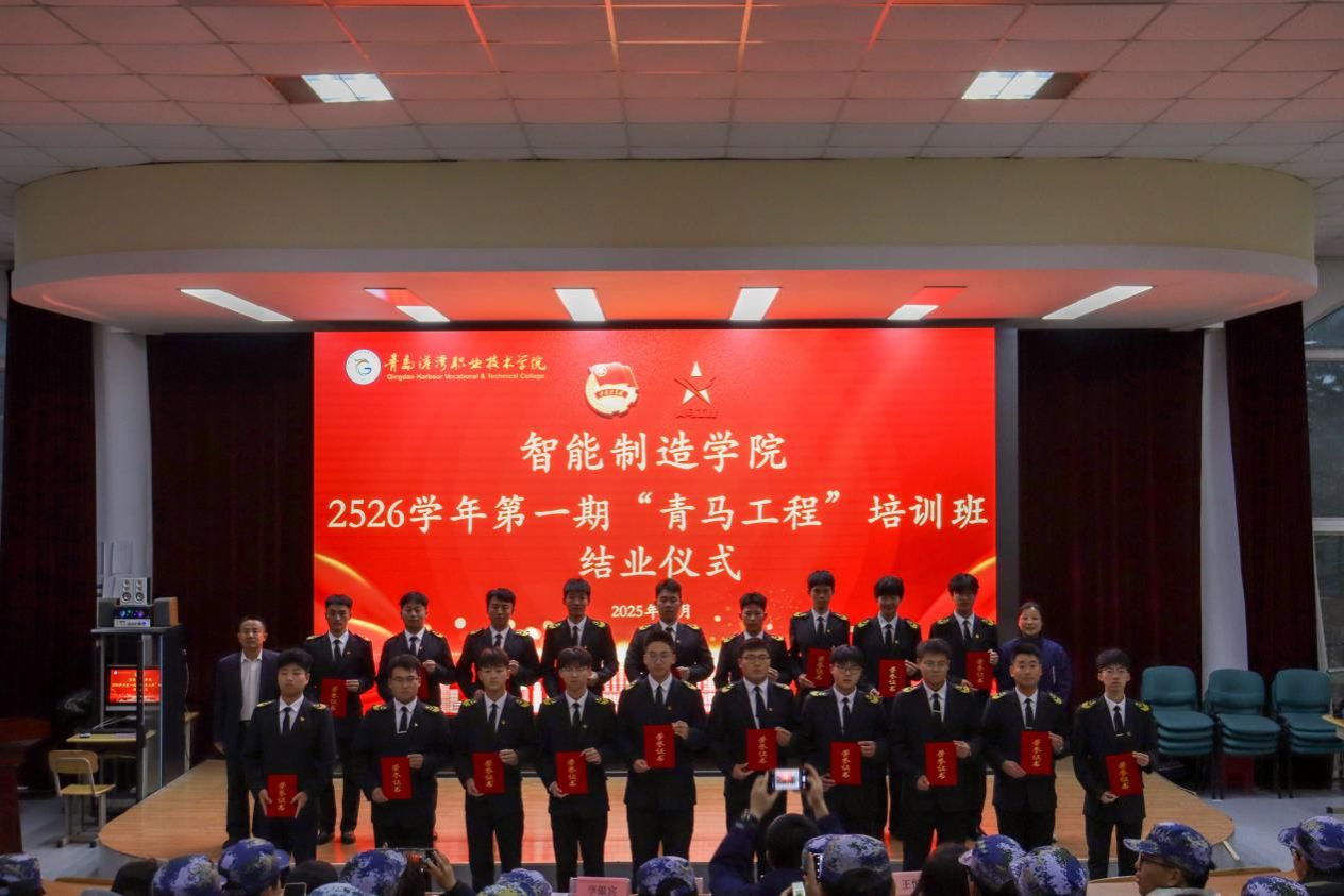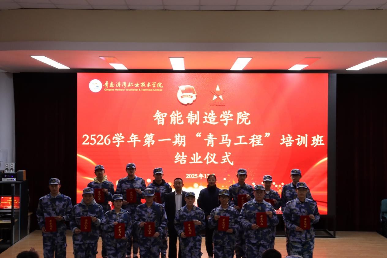 12月11日,青岛港湾职业技术学院智能制造学院在B5小礼堂隆重举行2526学年第一期“青年马克思主义者培养工程”学生骨干培训结业仪式。学院党总支副书记李银宾、团支部书记康忠香及全体辅导员出席,青马工程一期全体学员、教官参加。