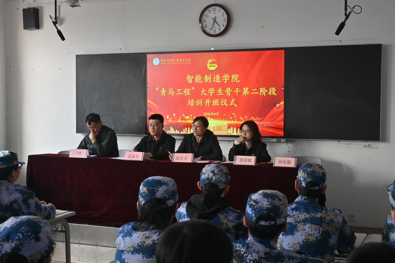 4月1日,智能制造学院举行2526学年第二期“青马工程”学生骨干培训开班仪式。学院党总支副书记康忠香、团总支书记高延年以及全体辅导员出席仪式,学生干部代表杨静远主持仪式,青马工程二期全体学员参加。